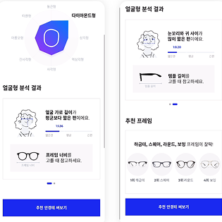 얼굴 인식 결과와 성별을 입력하면 얼굴형 분석을 통해 프레임 너비와 템플 길이를 안내하고, 이에 맞는 안경테를 추천해요. 이후 3D로 바로 착용해 볼 수 있어요. 오프라인 안경점에서 테를 직접 골라보는 경험을 자연스럽게 온라인으로 옮긴 경험이 인상적입니다. 매장 방문 없이 합리적 선택이 가능해요.