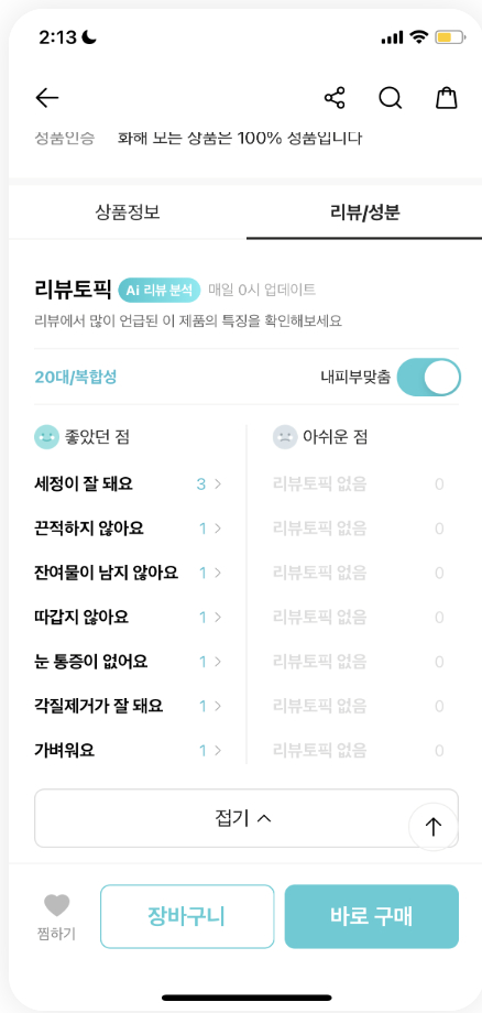 초 개인화 리뷰: 내 피부 타입에 맞는 리뷰만 확인하기