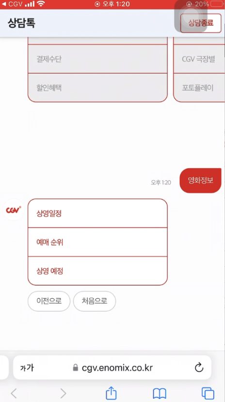 영화 예매, 이벤트, 멤버십 등 자주 묻는 질문을 중심으로 문제 해결 경로를 빠르게 제시하며, 필요한 경우 추가 문의로 자연스럽게 이어질 수 있도록 구성되어 있습니다.