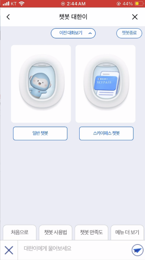 챗봇을 통해 항공 서비스와 관련된 문의를 즉시 확인하고 해결할 수 있습니다.