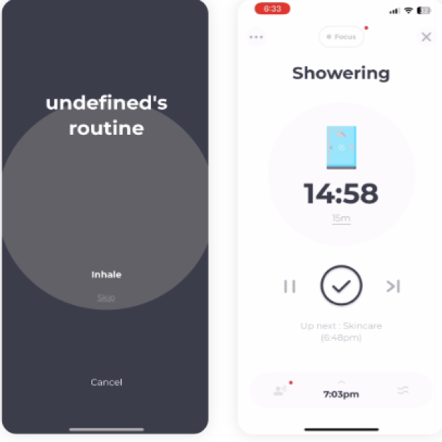 루티너리는 루틴을 ‘체크리스트’가 아닌 ‘플레이리스트’처럼 흐르는 경험으로 재해석했습니다. 사용자가 만든 루틴을 시간대별로 재생할 수 있고, 중앙에 크게 배치된 재생 버튼이 이 흐름을 직관적으로 시작하도록 유도해요. 루틴을 눌러 확인하는 방식이 아니라, 자연스럽게 따라가며 실행하는 사용자 경험을 강화한 점이 돋보입니다.