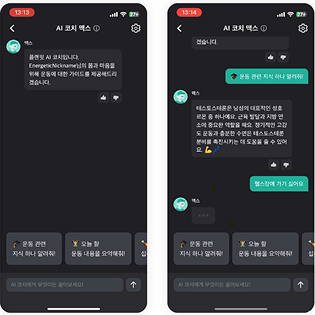 대화 참여를 이끌어내는 방식부터 AI 코치를 즉시 호출하는 경험까지, 각 서비스가 버튼 하나로 어떻게 행동 전환을 만들어내는지 확인해보세요!