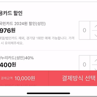 인터파크 티켓은 결제 금액과 함께 '결제방식 선택' CTA를 배치해, 사용자가 결제 전에 다양한 혜택을 직접 비교할 수 있게 합니다. 공연· 영화 등 문화 콘텐츠 결제는 카드사나 간편 결제 프로모션에 따라 혜택이 달라지는데, 결제 직전에 가장 유리한 방식을 스스로 선택할 수 있는 주도권을 제공한 점이 눈에 띕니다.
