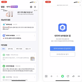 네이버 MYBOX에 저장된 과거 사진을 확인하라는 안내인데, 흥미로운 점은 "열어보세요"처럼 행동을 직접 요구하지 않는다는 점이에요. 대신 이미 무언가가 도착했다는 상태 전달에 가까운 문구로 호기심을 자극합니다.